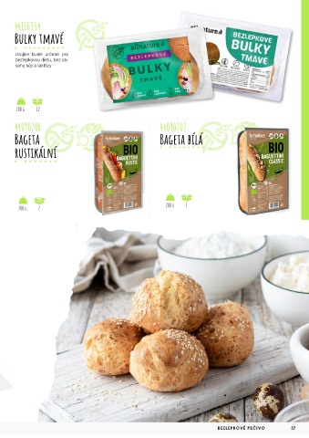 44116354 Bulky tmavé dvojice bulek určené pro bezlepkovou dietu, bez ob- sahu sóji a laktózy 100 g 12 44090706 44090707 Bageta Bageta bílá rustikální 200 g 7 200 g 7 BEZLEPKOVÉ PEČIVO 37